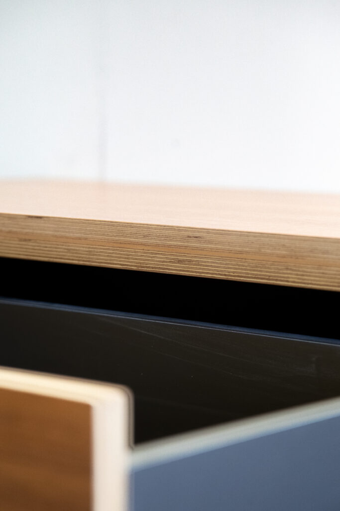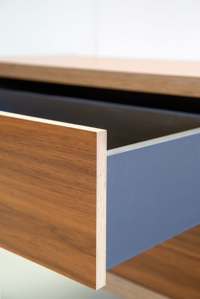 Birch ply floating bathroom cabinet.